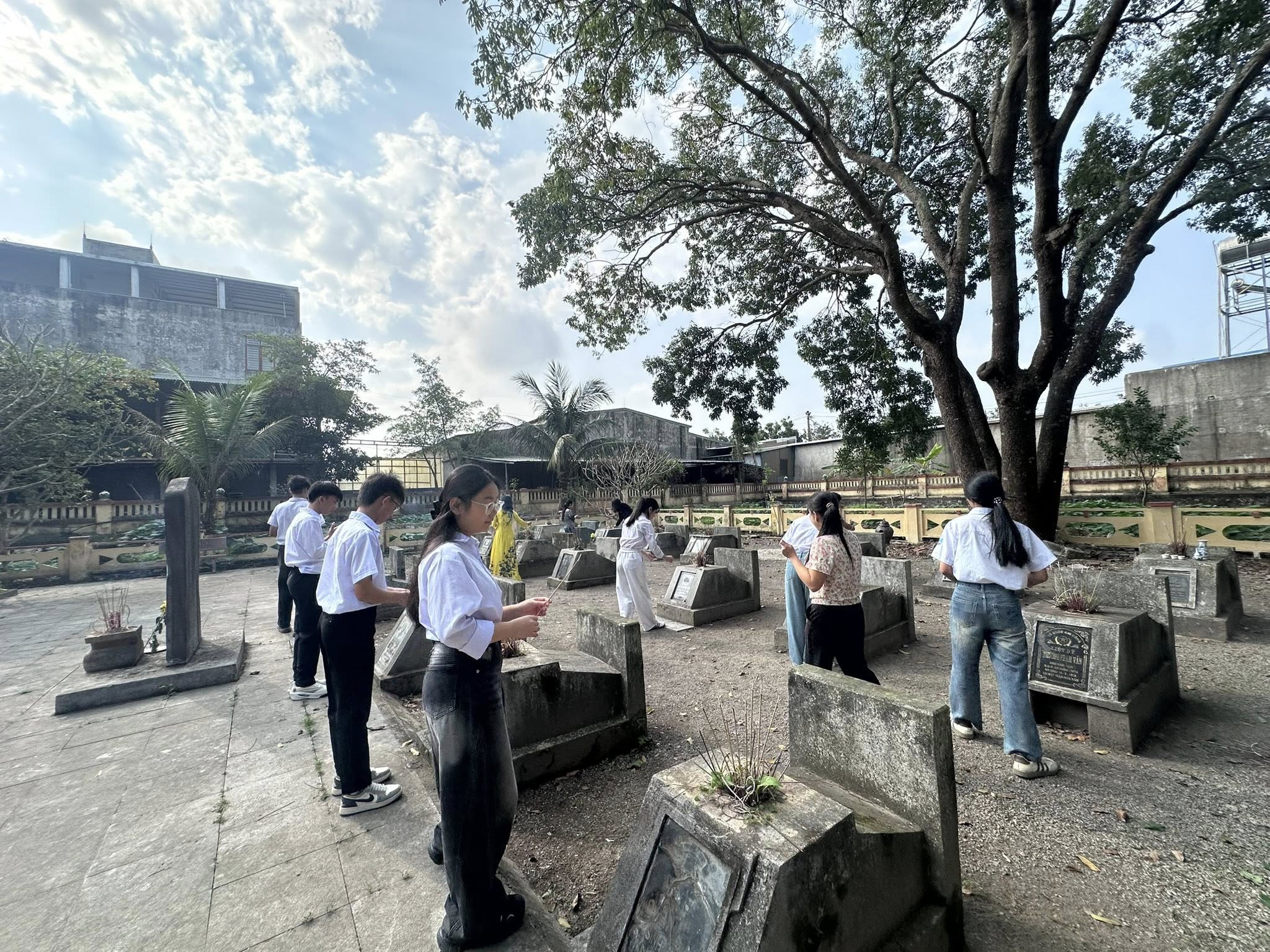 7. BGH trường Mầm non Đông Tân, BGH trường Tiểu học,BGH THCSvà đại diện học sinh trường THCS Đông Tân tổ chức dâng hương tại khu nghĩa trang liệt sĩ Đông Tân